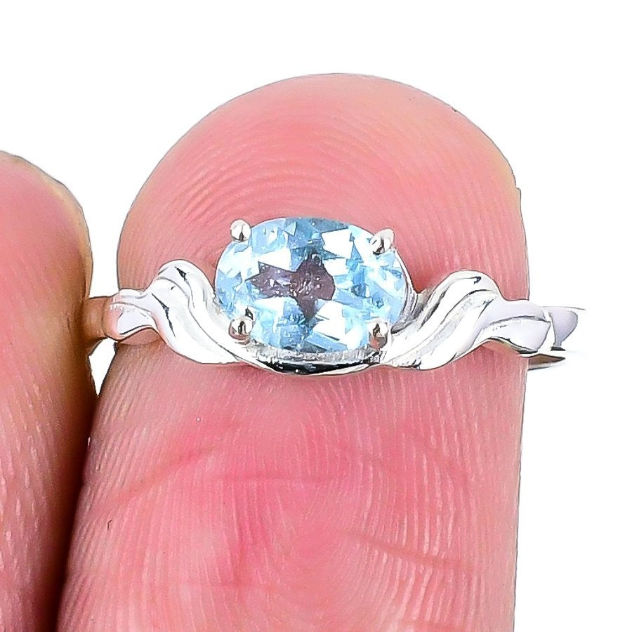 Swiss Blue Topaz Gemstone Cluster Wife Ring Jewelry Size 7 Solid Sterling Silver