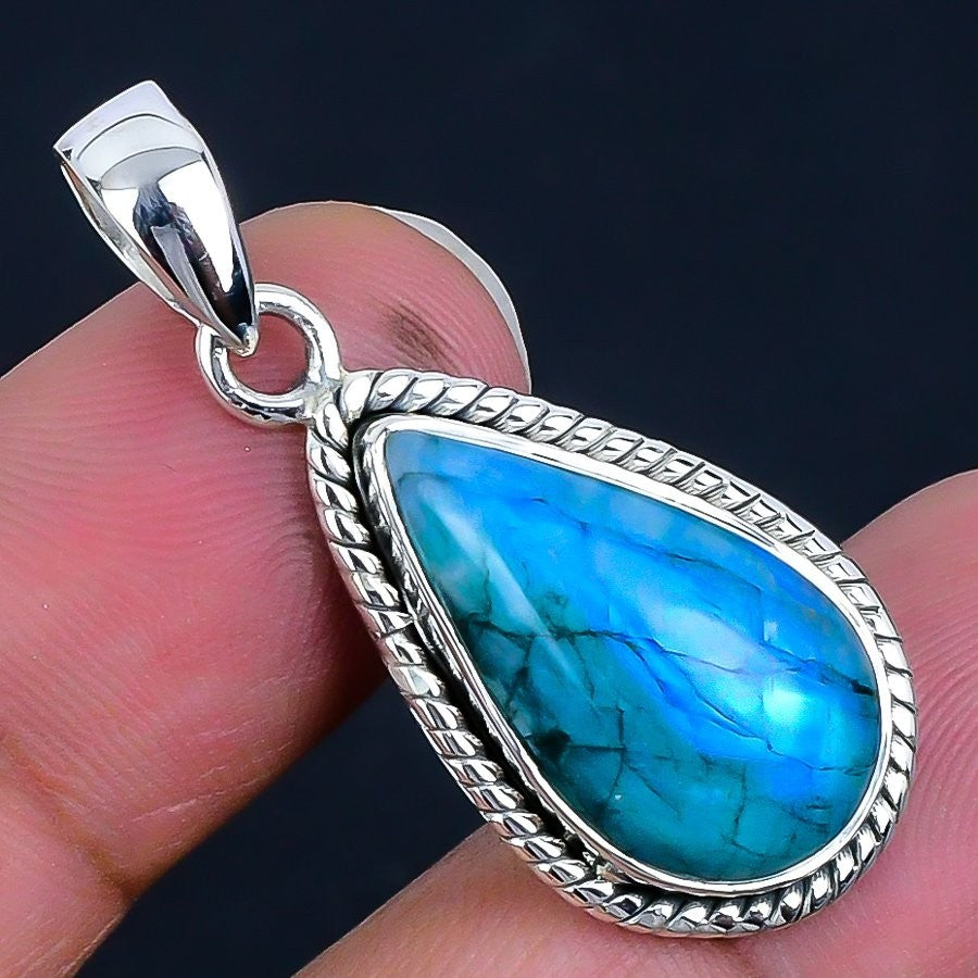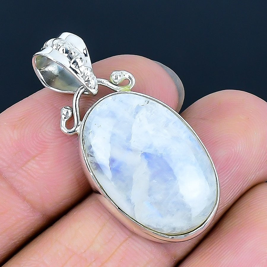Rainbow Moonstone Gemstone 925 Sterling Silver Crown Chakra Wife Pendant Jewelry