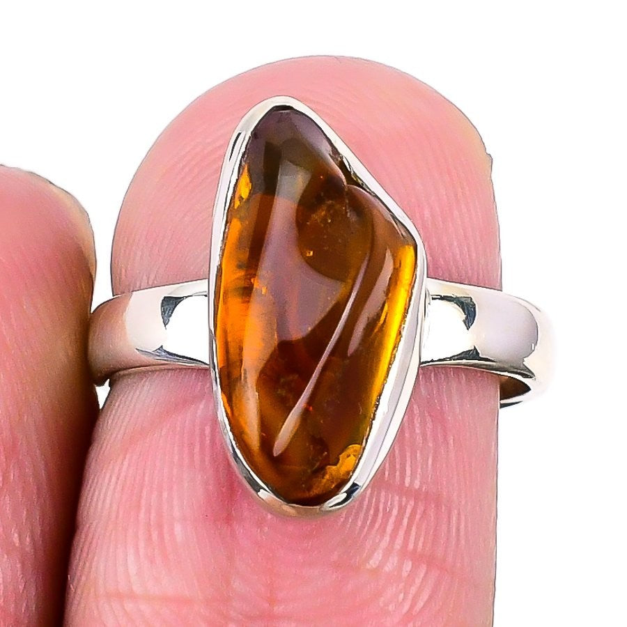 Baltic Amber Stone 925 Sterling Silver Wedding Cluster Unique New Ring Size 6.5