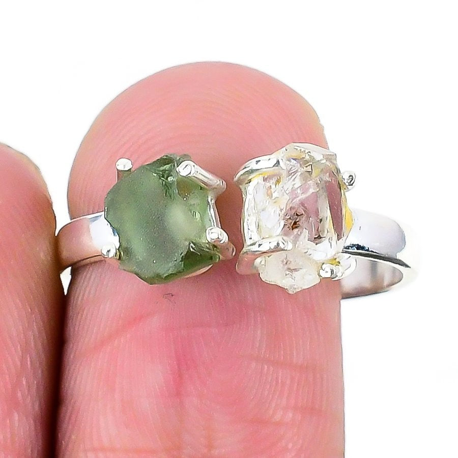 Herkimer Daimond Gemstone Sterling Silver Daughter Cluster Ring Jewelry Size 10