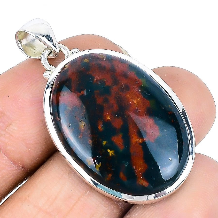 Natural Bloodstone 925Ā SolidĀ Silver Engagement Elegant Wedding Birthday Pendant