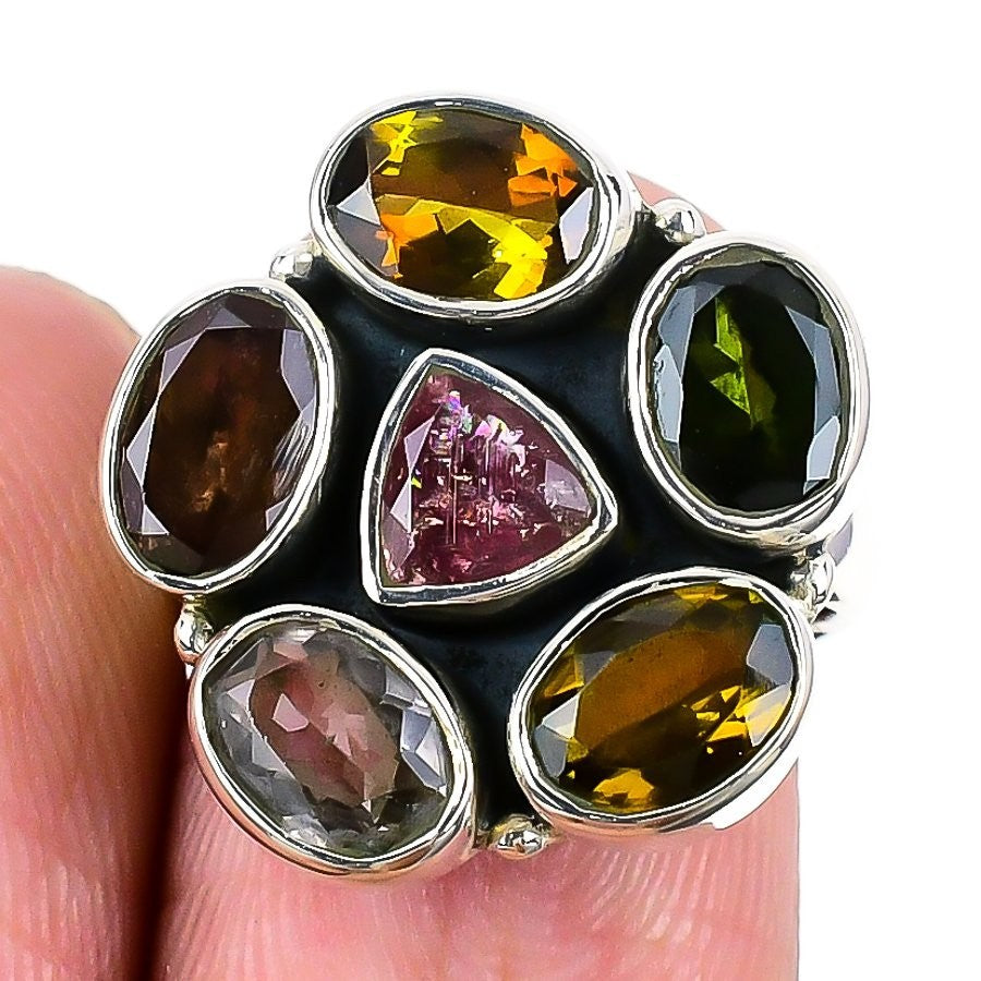 Natural Multi Tourmaline Cluster Birthday Sister New Ring Size 6 Sterling Silver