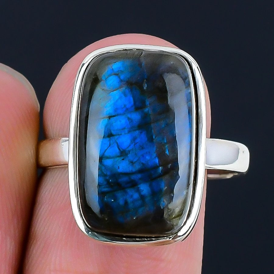 Natural Labradorite 925 Silver Trendy Birthday Mother Statement Unique New Ring