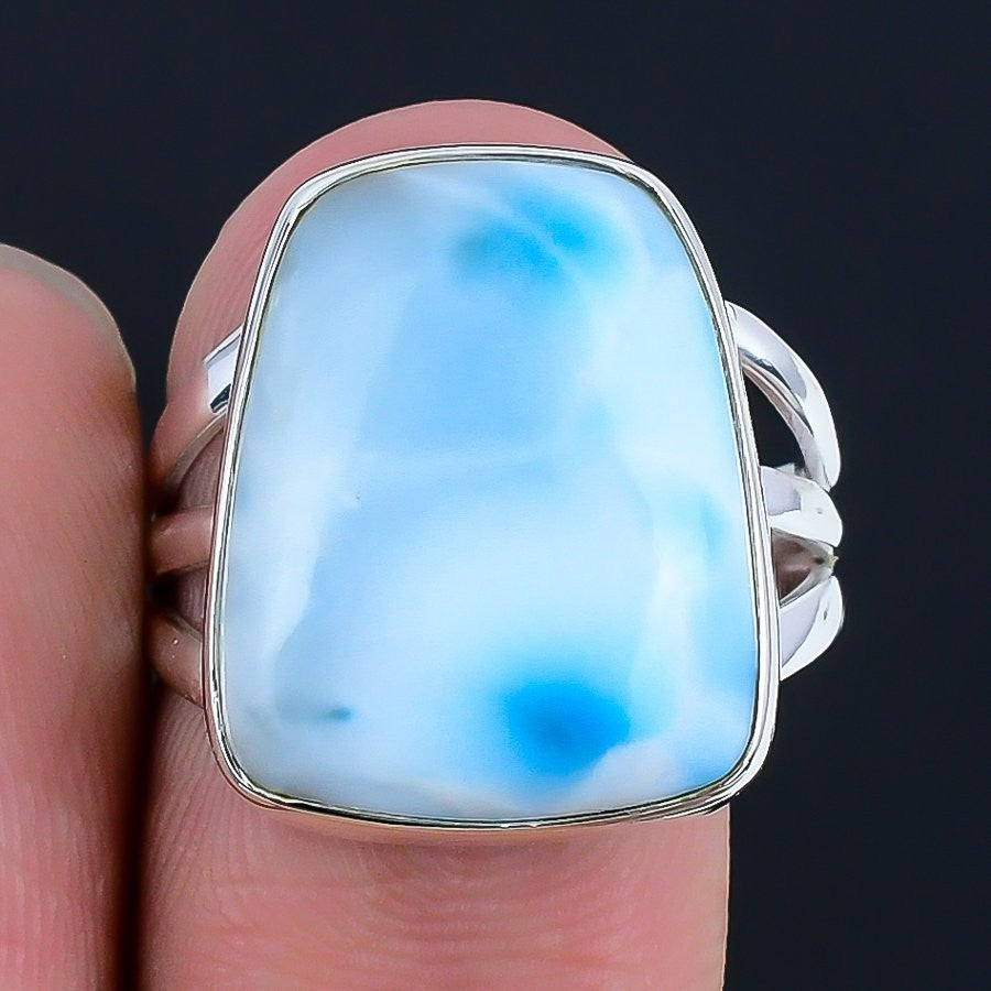 Larimar Gemstone Sterling Silver New Statement Bezel Anniversary Ring Size 8.5