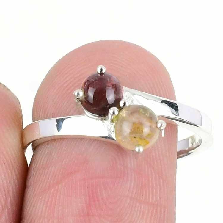 multi tourmaline Stone Birthday Cluster Ethnic Wife Ring Size 7.5 Solid Silver