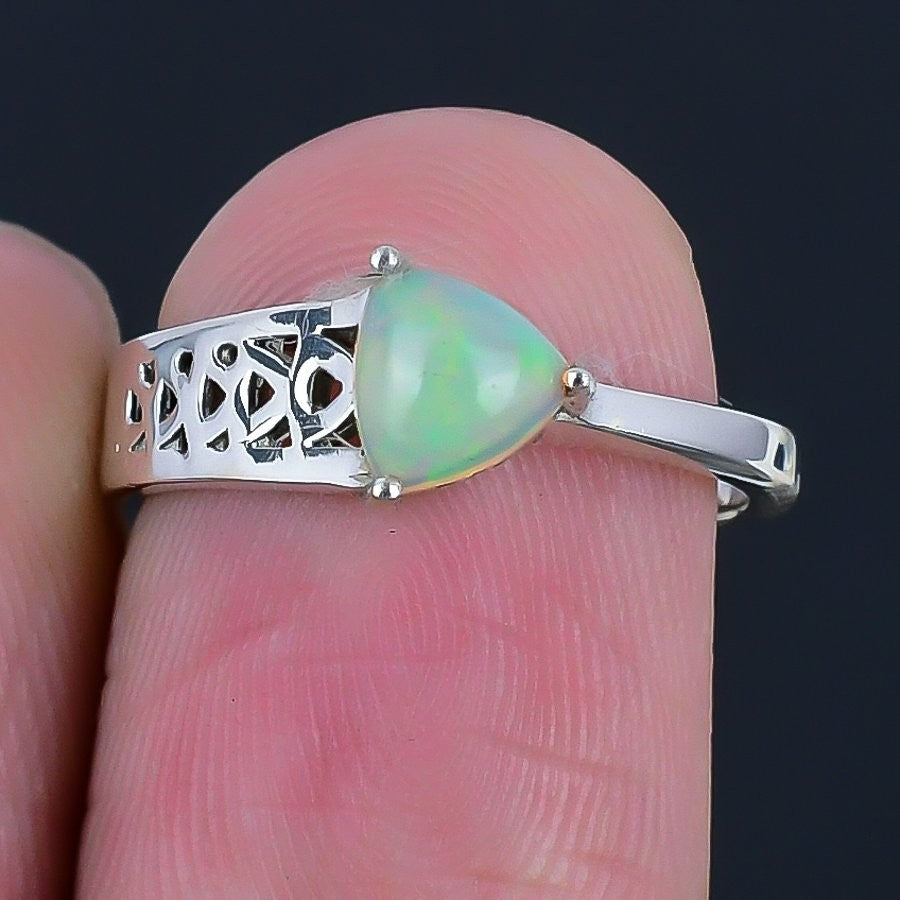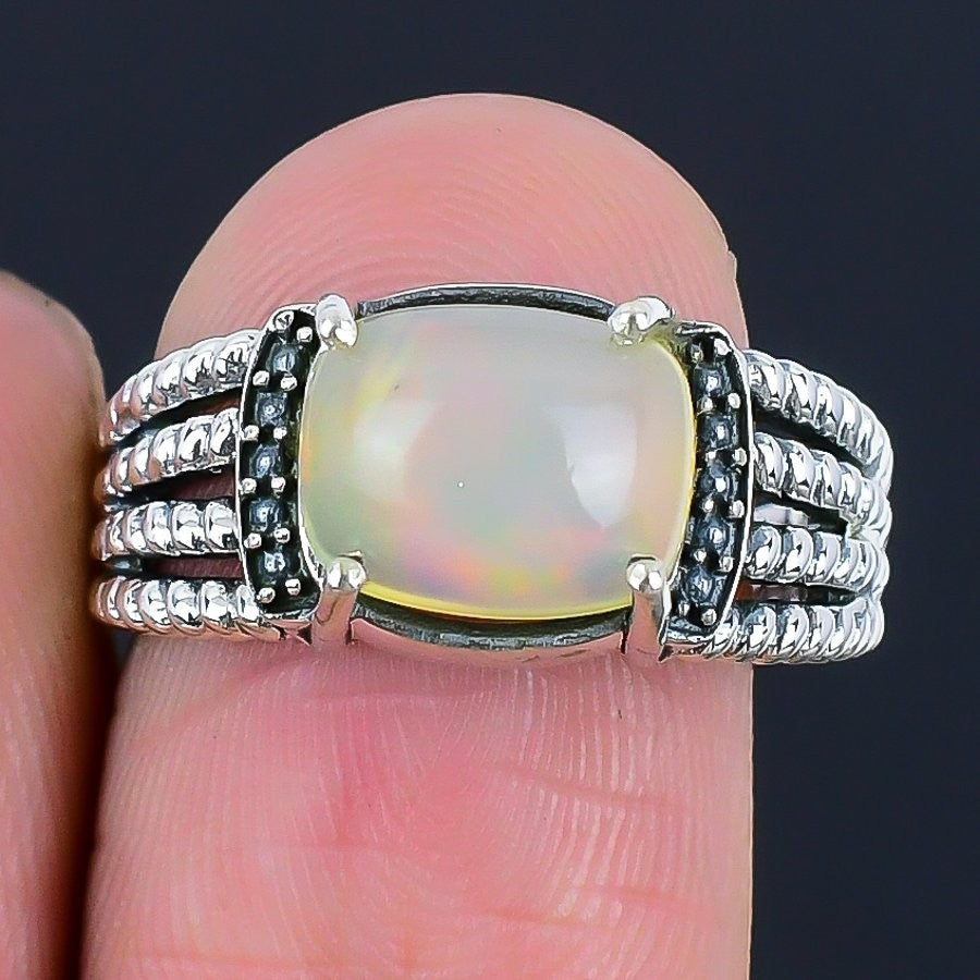 Ethiopian Opal Gemstone Solid Silver Cluster Handmade Boho Ring Jewelry Size 6