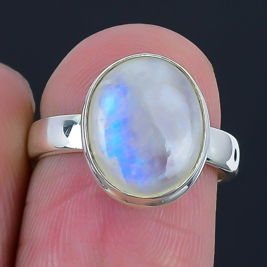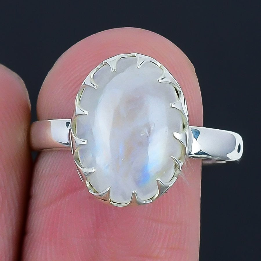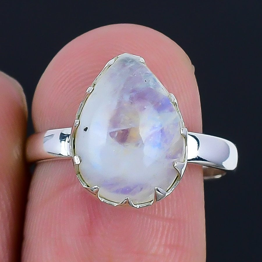 rainbow Rainbow Moonstone Stone Sterling Silver Wife Cluster Ring Jewelry Size 6
