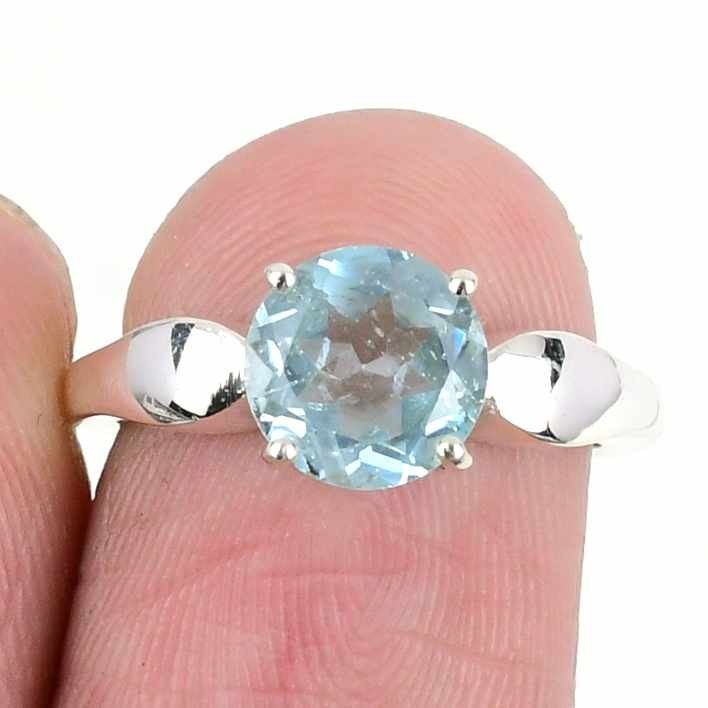 Natural Swiss Blue topaz Solid Silver Birthday Cluster New Ring Jewelry Size 6