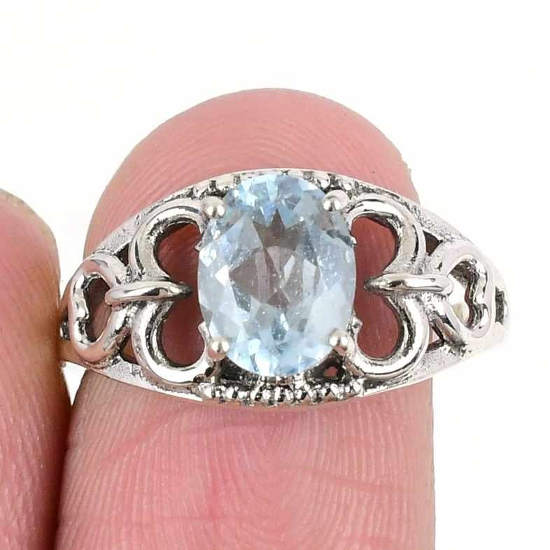 Swiss Blue topaz Gemstone 925 Silver Ethnic Cluster Wedding Sister Ring Size 7.5