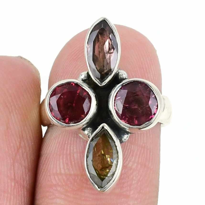 Multi Tourmaline Stone 925Ā SolidĀ Silver Cluster Best Daughters Gift Ring Jewelry