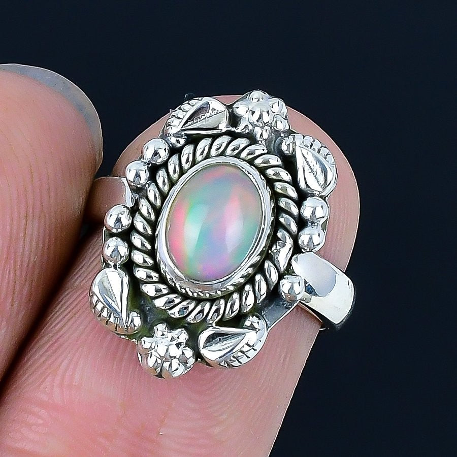 Ethiopian Opal Gemstone Boho Statement Engagement Ring Jewelry Size 6 925 Silver