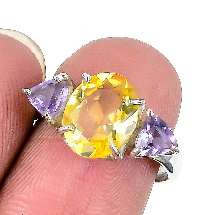 November Citrine Faceted Stone Solid Silver Handmade Statement Anniversary Ring