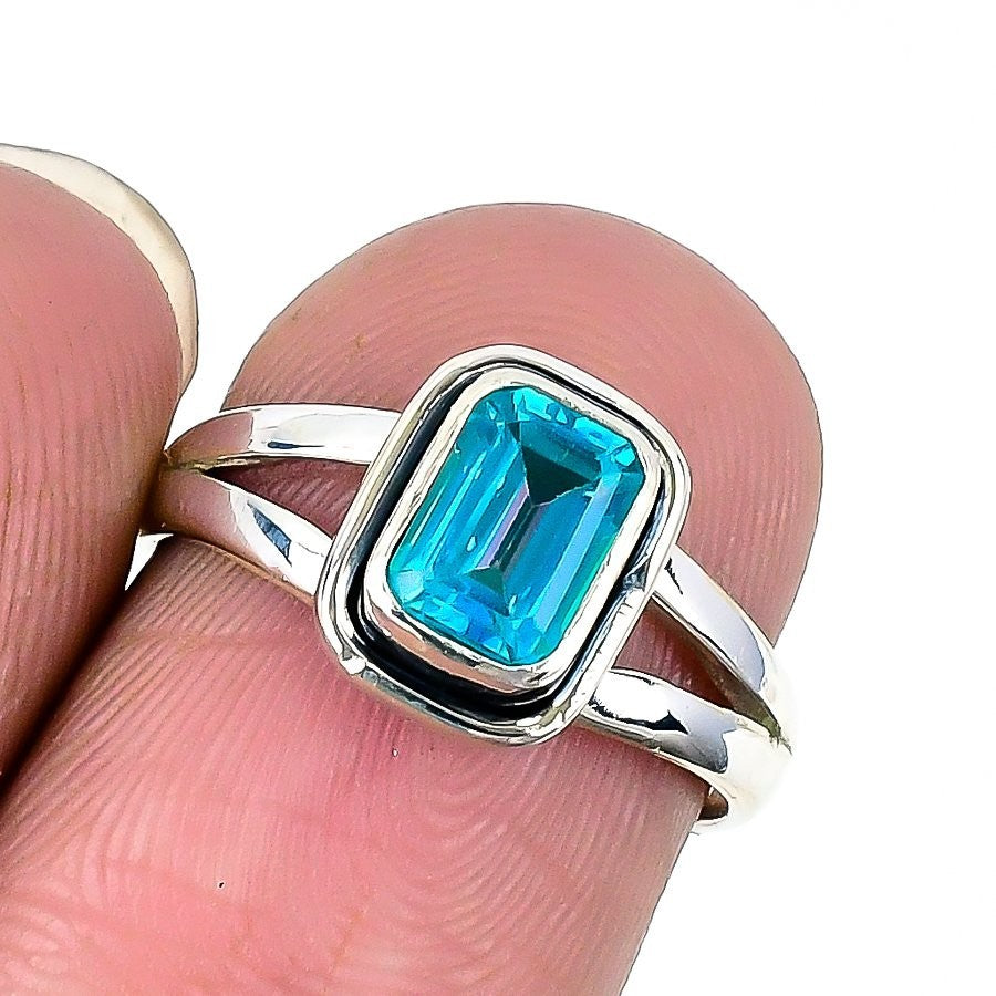 Swiss Blue Topaz Stone 925 Sterling Silver Daughter Unique Trendy Statement Ring