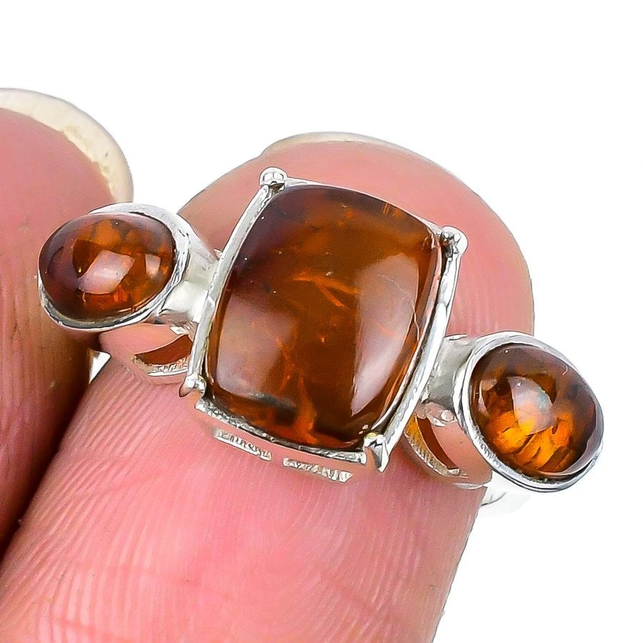 Natural Baltic Amber 925Ā SolidĀ Silver Sister Statement Sacral Chakra Ring Size 7