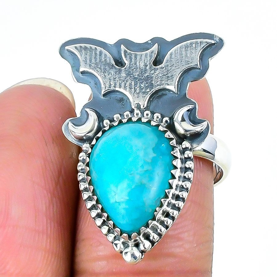 Arizona Turquoise Bat Gemstone 925 Silver Unique Statement Art Deco Ring Jewelry