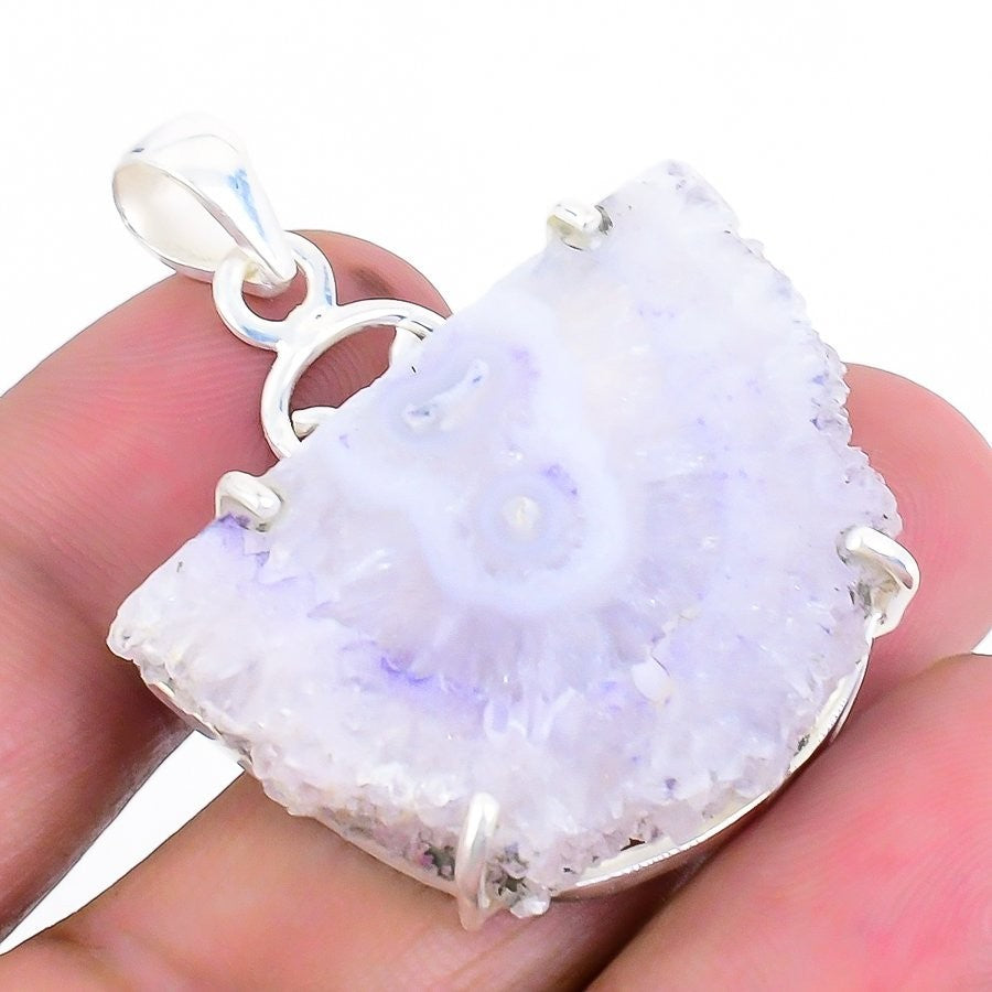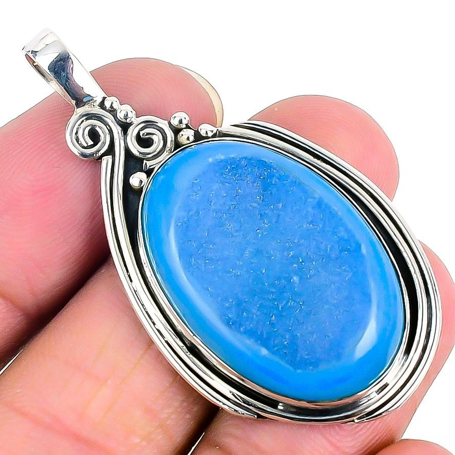 Blue Druzy Stone 925 Silver Bezel Birthday Daughter Gift Sister Wedding Pendant