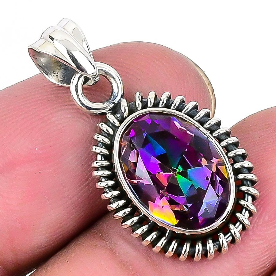 Rainbow Mystic Topaz Stone 925 Silver Wedding Boho Artisan Wife Pendant Jewelry