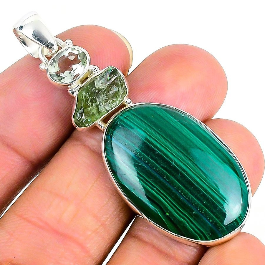Heart Chakra Malachite Stone 925 Sterling Silver Daughter Trendy Bezel Pendant