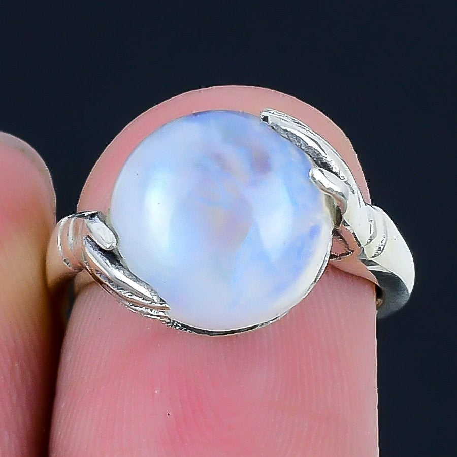 Natural Rainbow Moonstone Wife Wedding Statement Ring Solid Sterling Silver US 6