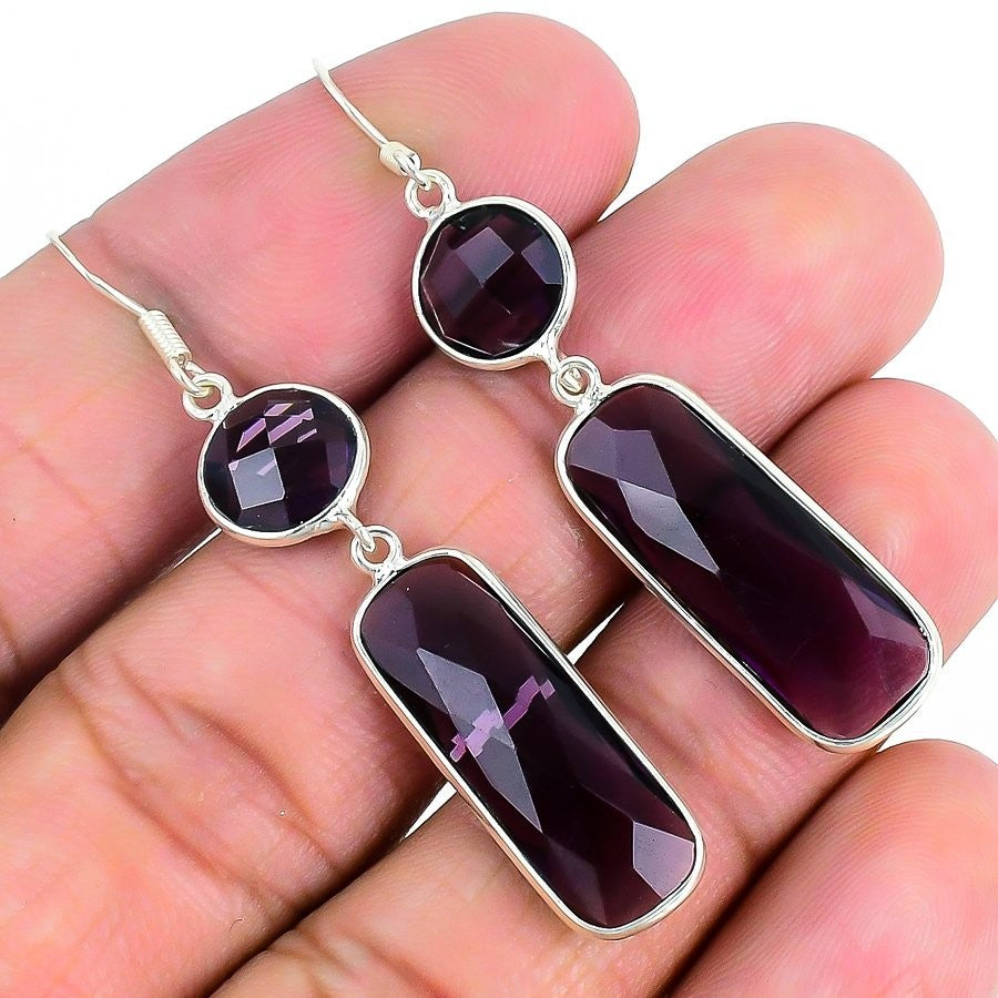 Natural Amethyst Treated Solid Silver Drop Best Daughters Gift Earrings Jewelry
