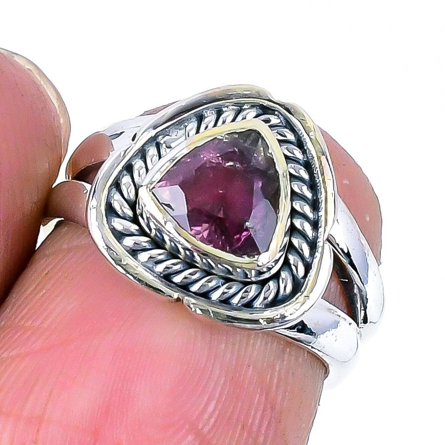 Watermelon Tourmaline Stone 925 Sterling Silver Statement Trendy Ring Jewelry