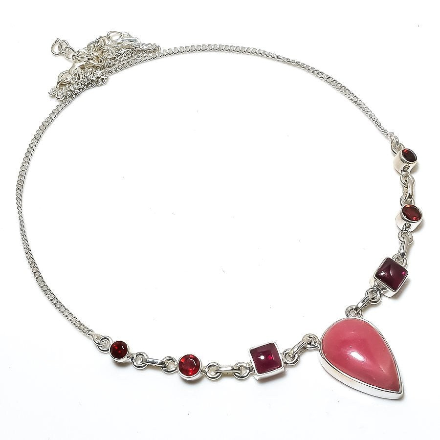 Rhodochrosite Gemstone 925Ā SolidĀ Silver Wedding Chain Engagement New Necklace