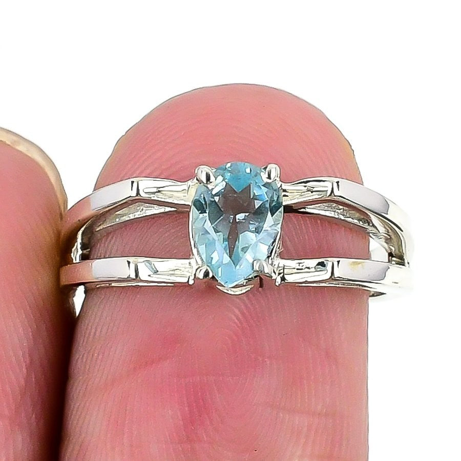 Swiss Blue Topaz Stone Solid Silver Ethnic Statement Sister Ring Jewelry Size 7