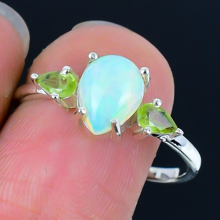 Ethiopian Opal Stone Sister Statement Unique Ring Jewelry Size 5.5 925 Silver