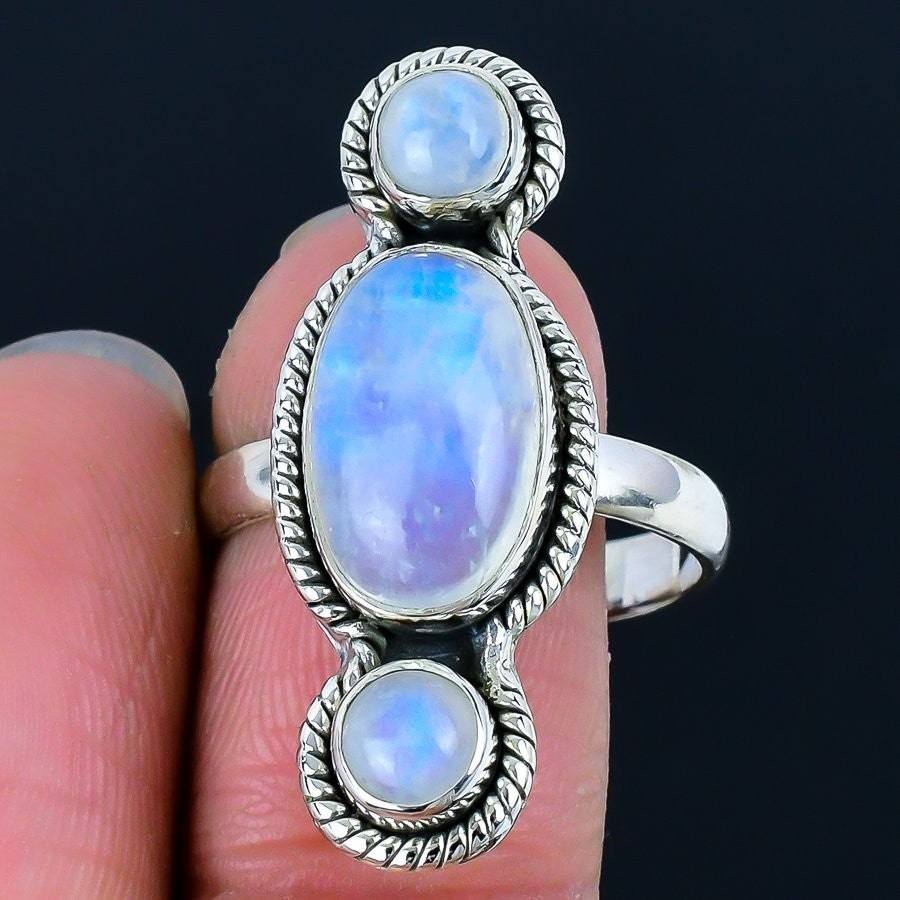 Rainbow Moonstone Stone 925 Sterling Silver Mother Statement Ring Jewelry US 11