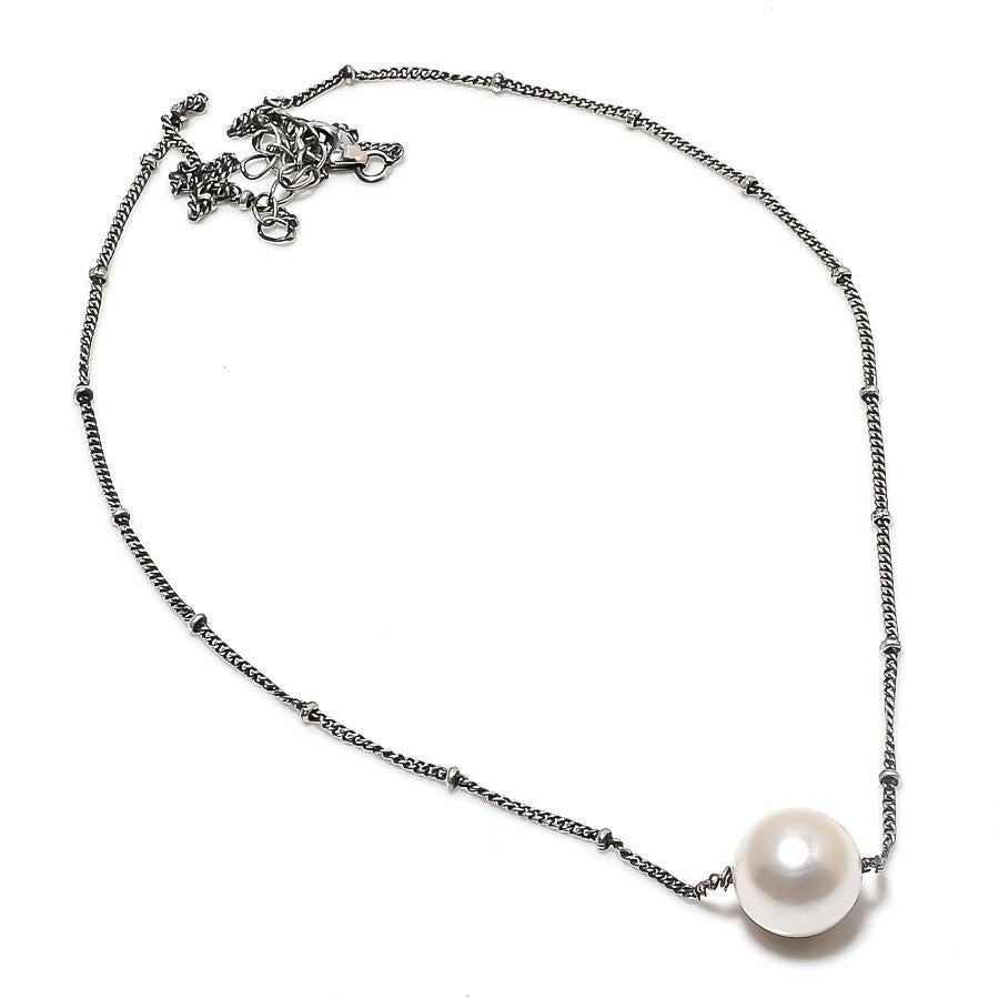 Daughters Day Sale Natural Pearl 925 Silver Wedding Anniversary Chain Necklace
