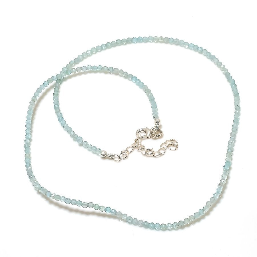 Aquamarine Faceted Stone 925Ā SolidĀ Silver Boho Chain Birthday Necklace Jewelry