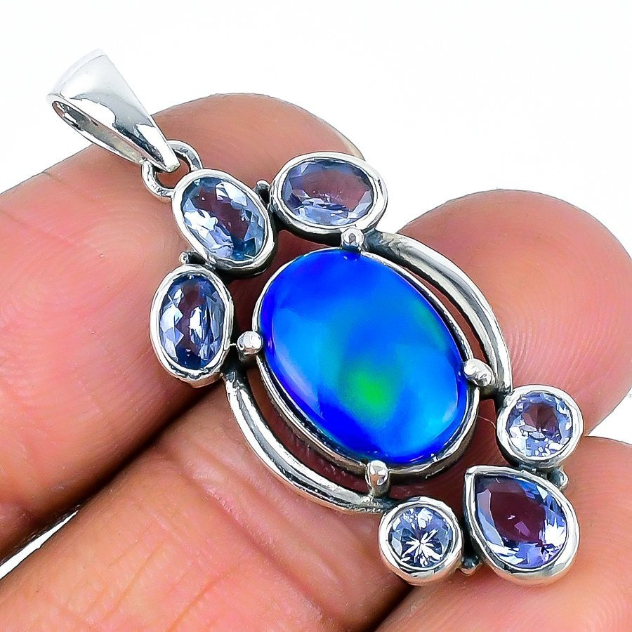 Aurora Opal Stone Solid Sterling Silver Engagement Daughters Day Wedding Pendant