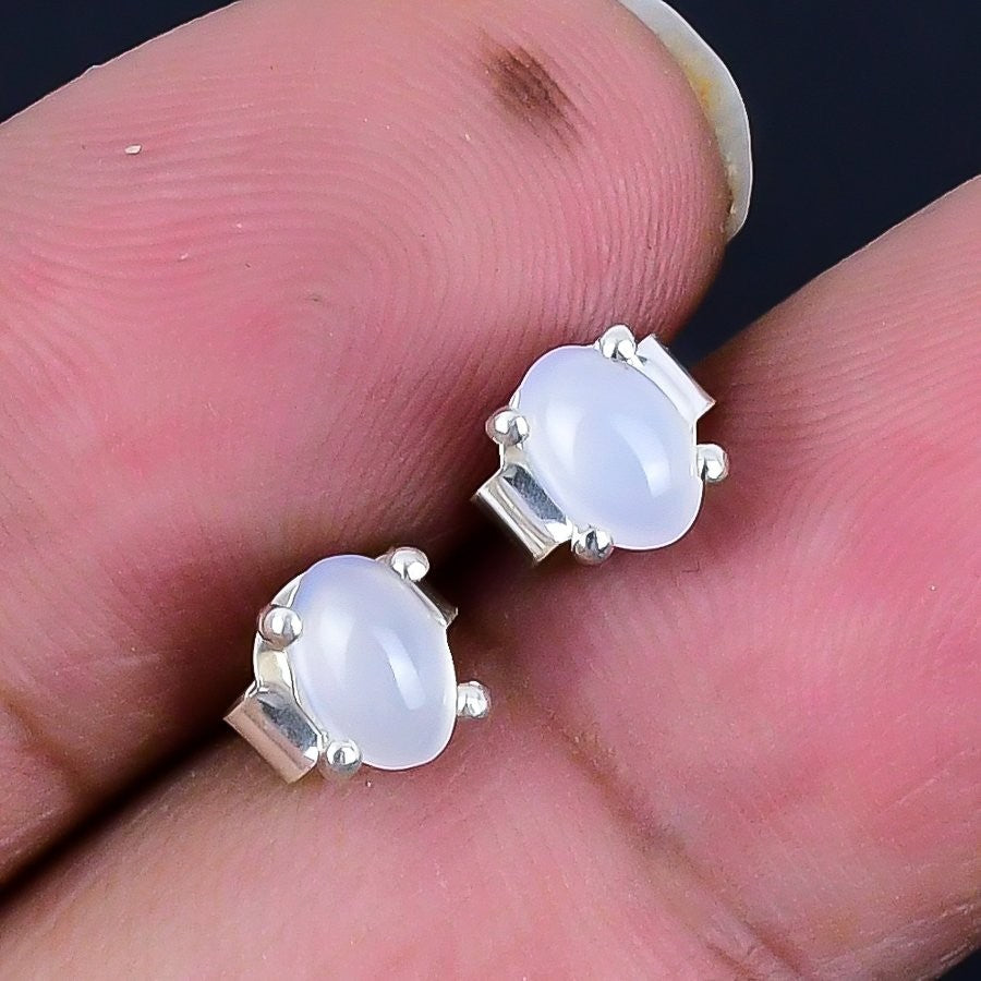 Daughters Day Sale Natural Aqua Chalcedony Solid Silver Stud Earrings Jewelry
