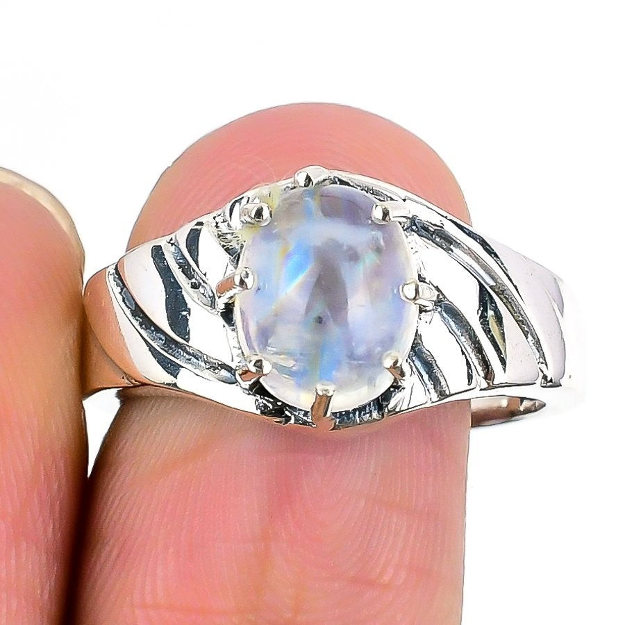 Moonstone Faceted Stone Birthday Statement Wife New Ring Size 7 Sterling Silver