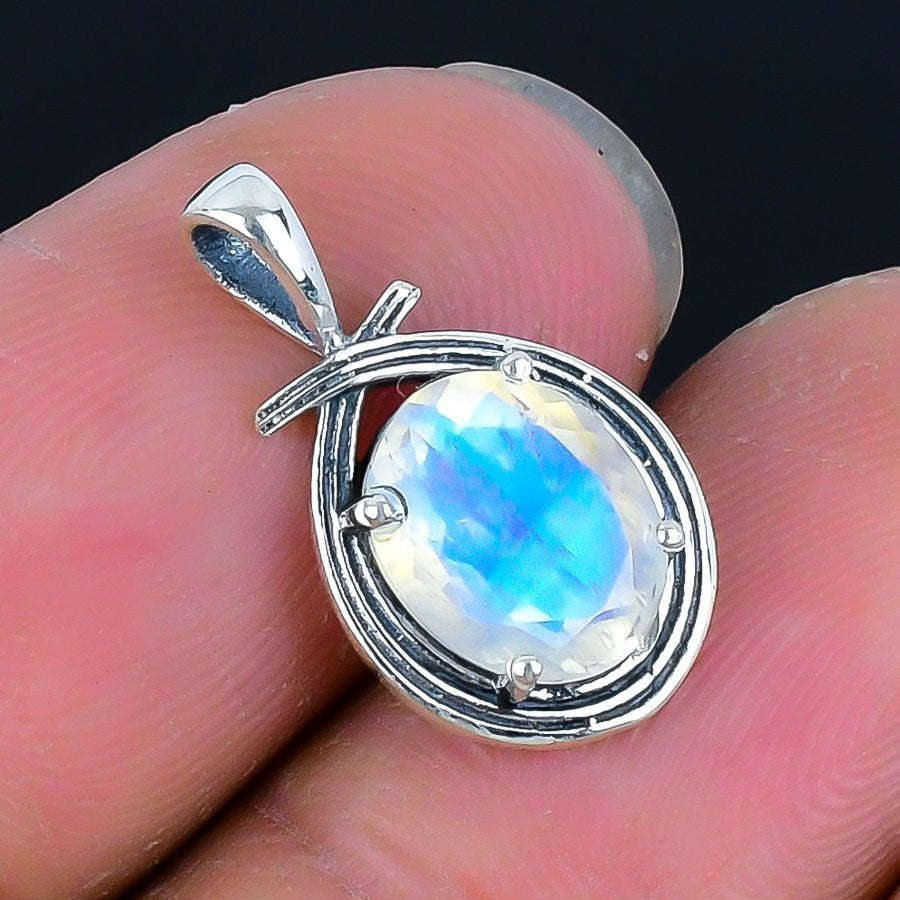 June Birth Natural Moonstone Faceted Elegant Wife Trendy Pendant Sterling Silver