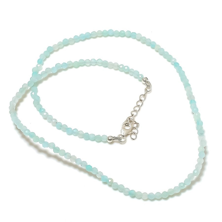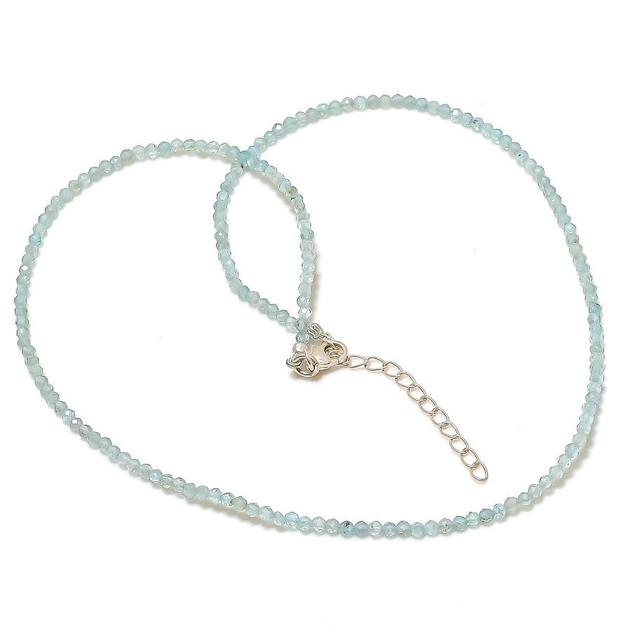 Aquamarine Faceted Gemstone March Chain Necklace Jewelry Solid Sterling Silver