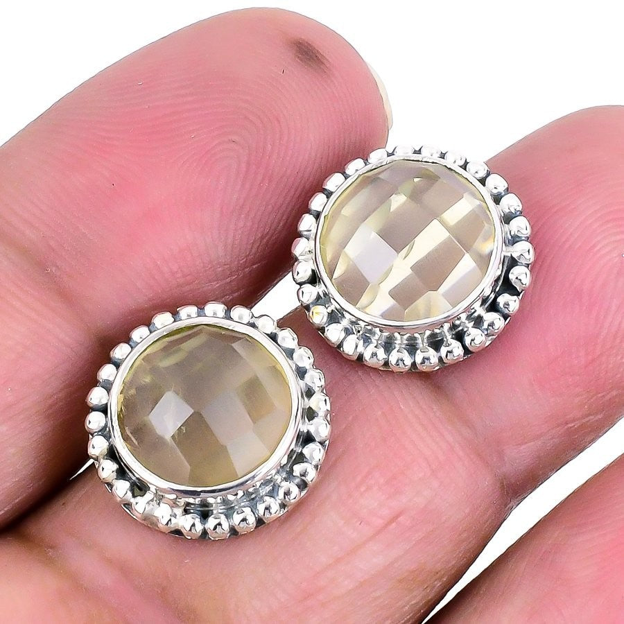 Lemon Topaz Stone Sterling Silver Stud Post Trendy Anniversary Earrings Jewelry