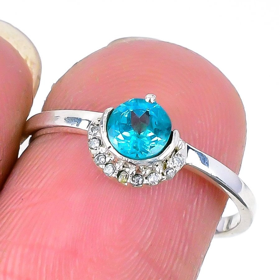 Natural Swiss Blue Topaz Solid Sterling Silver Statement Daughter Gift Ring US 8