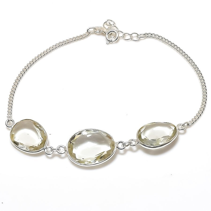 Natural Citrine Solid Silver Engagement Chain Wife Channel Set Bracelet Jewelry