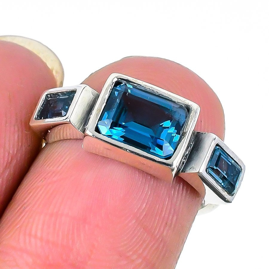 London Blue Topaz Gemstone 925 Solid Silver Boho Statement Ring Jewelry Size 6.5