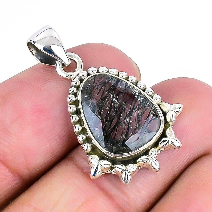 Black Rutile Gemstone Sterling Silver Elegant Daughter Wedding Pendant Jewelry