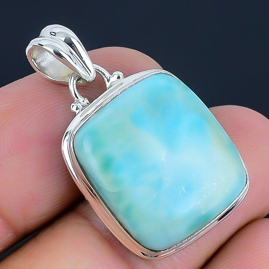 Daughters Day Sale Natural Larimar 925 Solid Silver Wife Boho Pendant Jewelry