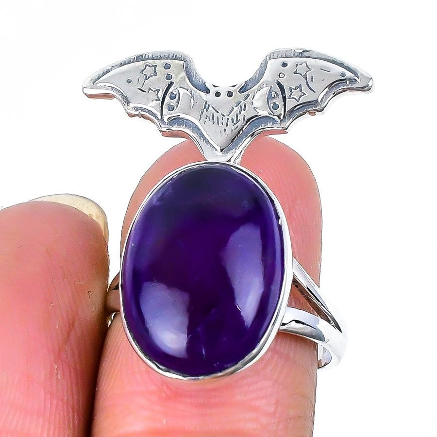 Natural Sage Amethyst Sterling Silver Wedding Trendy Wife Statement Ring US 8
