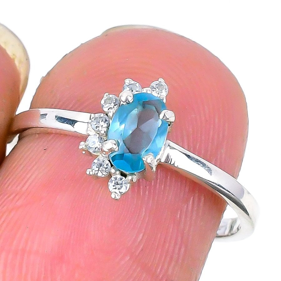 Swiss Blue Topaz Stone Solid Sterling Silver Elegant Wife Statement Ring Size 8