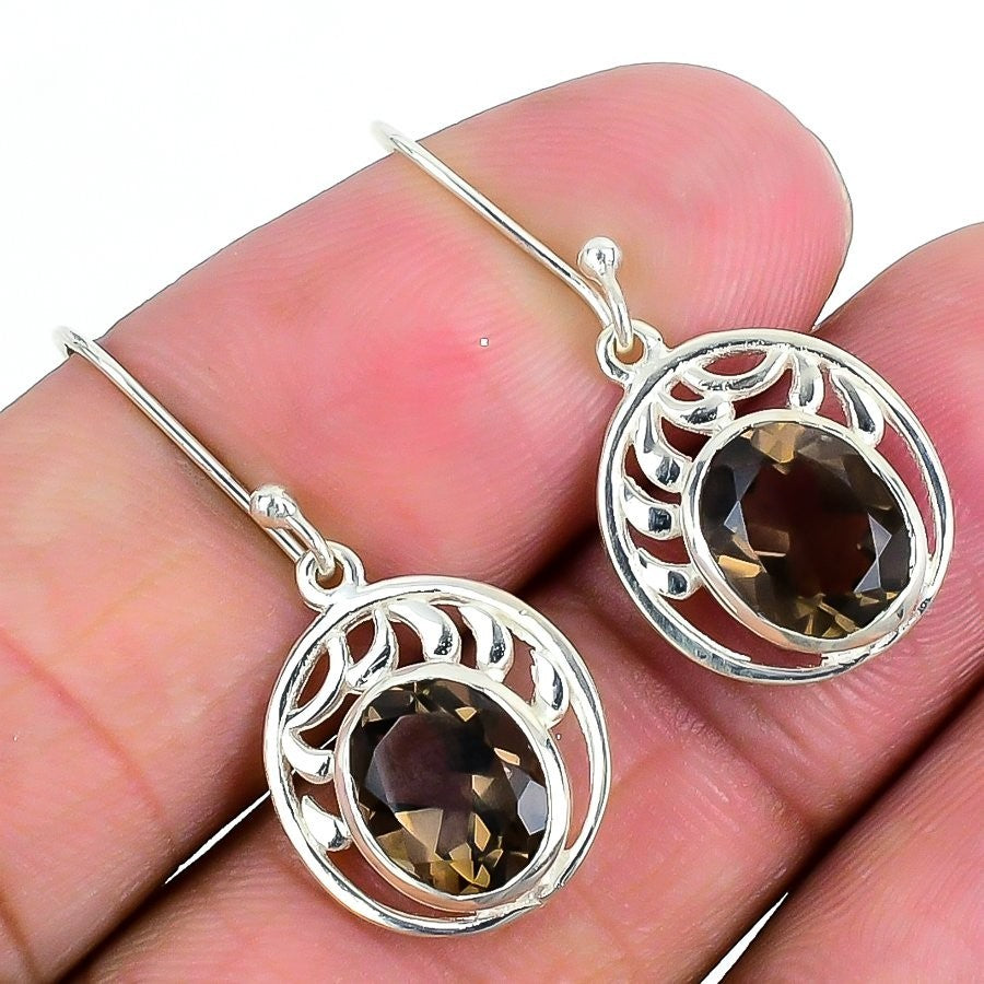 Natural Smoky Topaz Sterling Silver Hook Bezel Sister Boho Drop Artisan Earrings