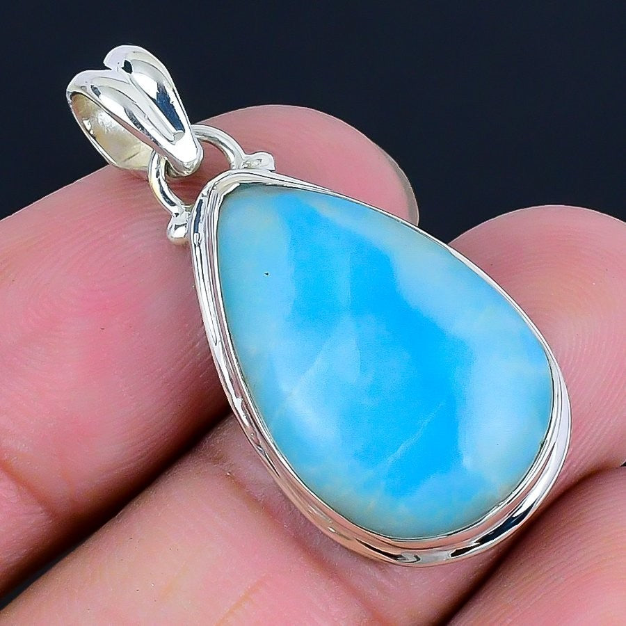 Larimar Stone Solid Silver Wedding Daughter Bezel Trendy Throat Chakra Pendant