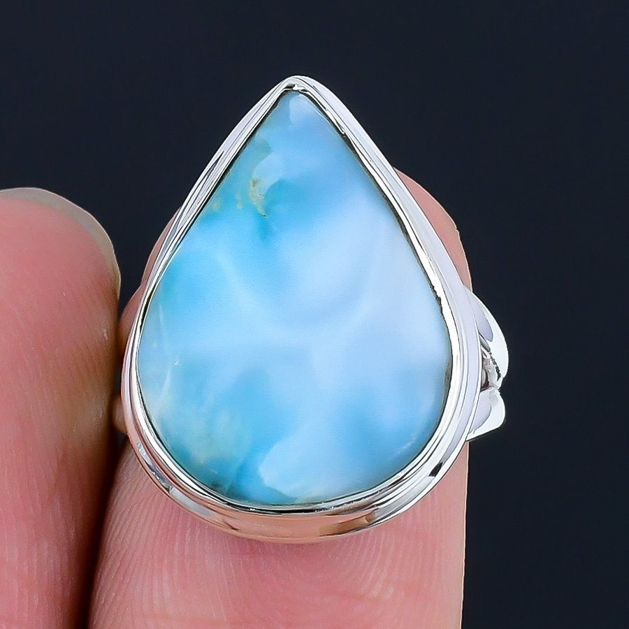 Natural Larimar Solid Silver Bezel Statement Handmade Birthday Ring Jewelry US 6