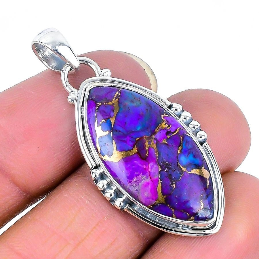 Natural Copper Purple Turquoise Anniversary Pendant Jewelry 925 Sterling Silver