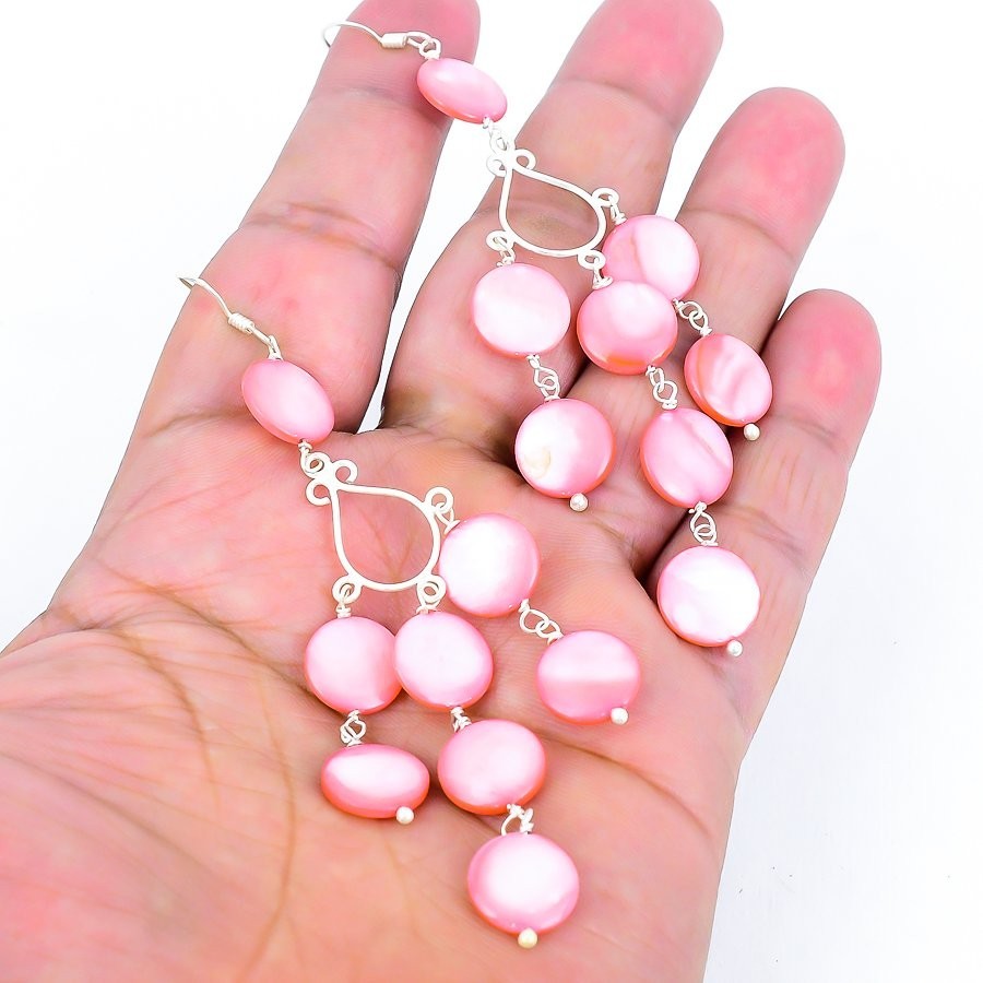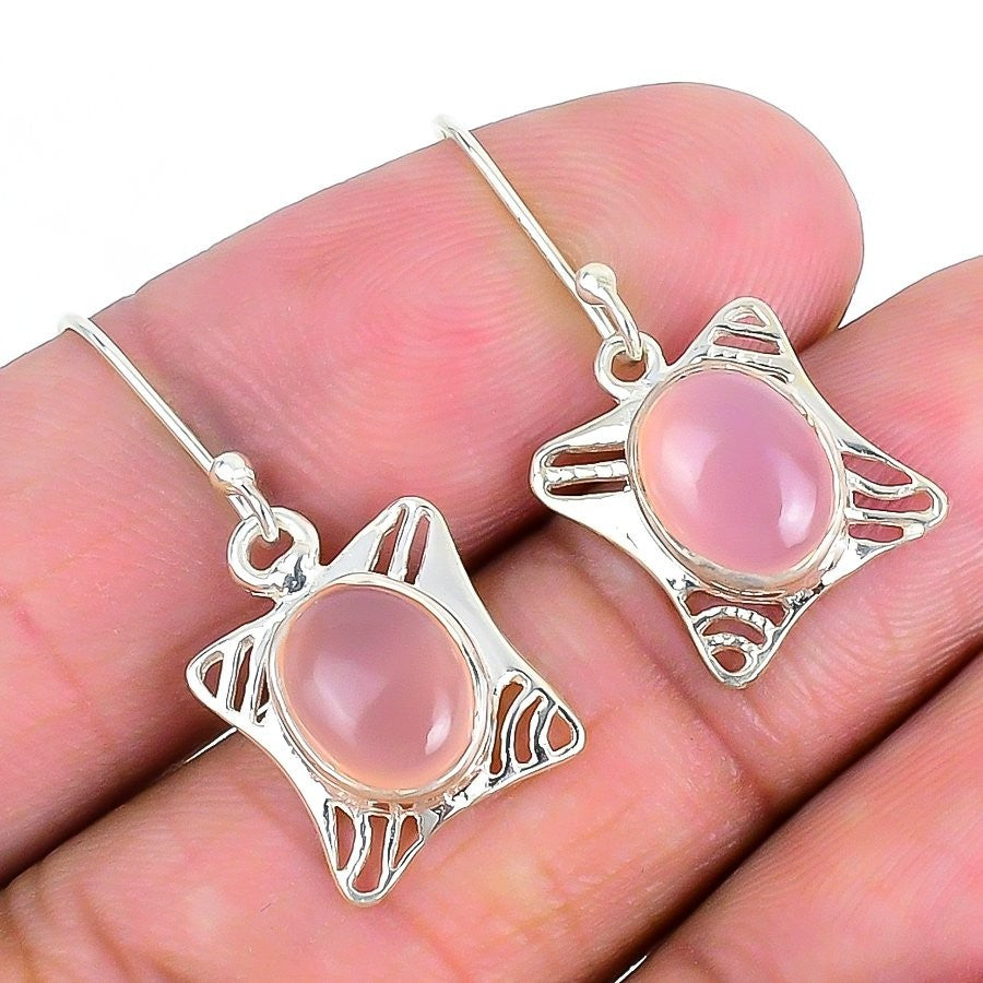 Rose Quartz Gemstone 925 Silver Channel Set Anniversary New Drop Mother Earrings
