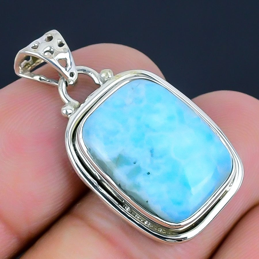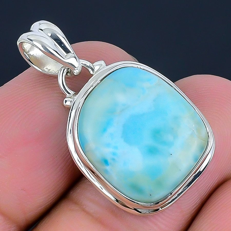 Larimar Gemstone 925 Silver Throat Chakra Mother Ethnic Anniversary Boho Pendant